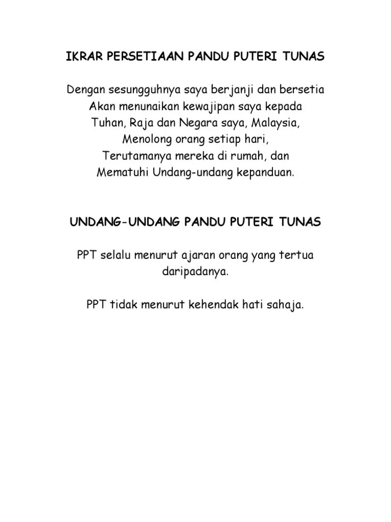 Ikrar Persetiaan Pandu Puteri Tunas : Undang Undang Dan Cogan Kata Pandu Puteri Tunas Otosection